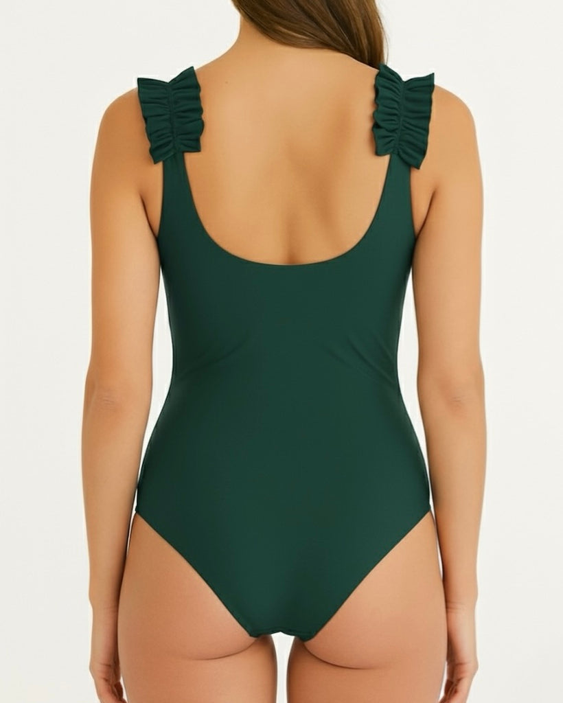 Meet Bobbie! A classic one piece with ruffled shoulder straps, a low cut back and full coverage. Also available in girls.