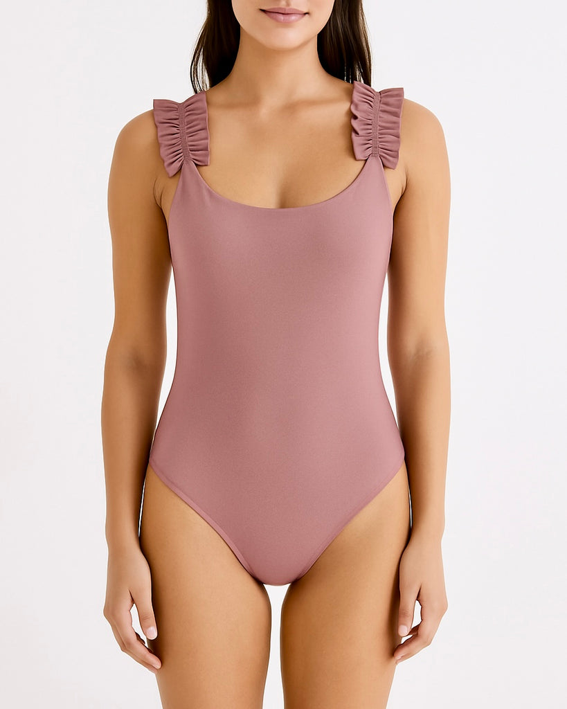 Meet Bobbie! A classic one piece with ruffled shoulder straps, a low cut back and full coverage. Also available in girls.