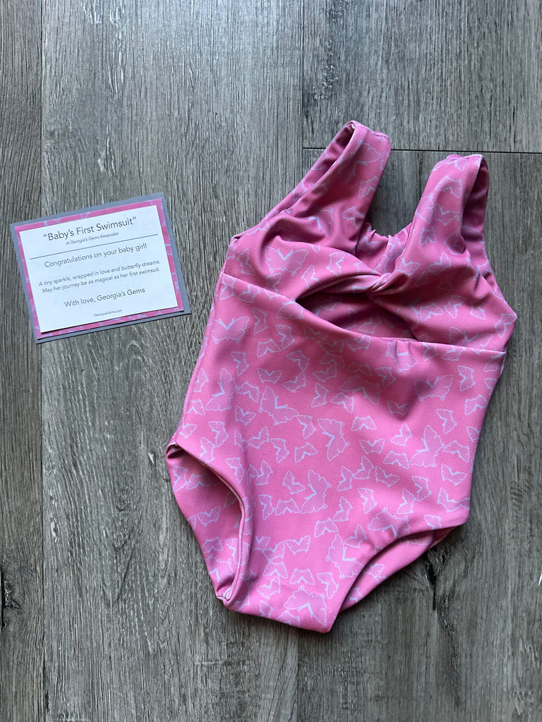 Introducing Baby’s First Swimsuit - a limited-edition design crafted from our exclusive pink swim fabric adorned with delicate silver butterflies. This dreamy print captures the magic of new beginnings - soft, shimmering, and sweetly symbolic of transformation and growth.