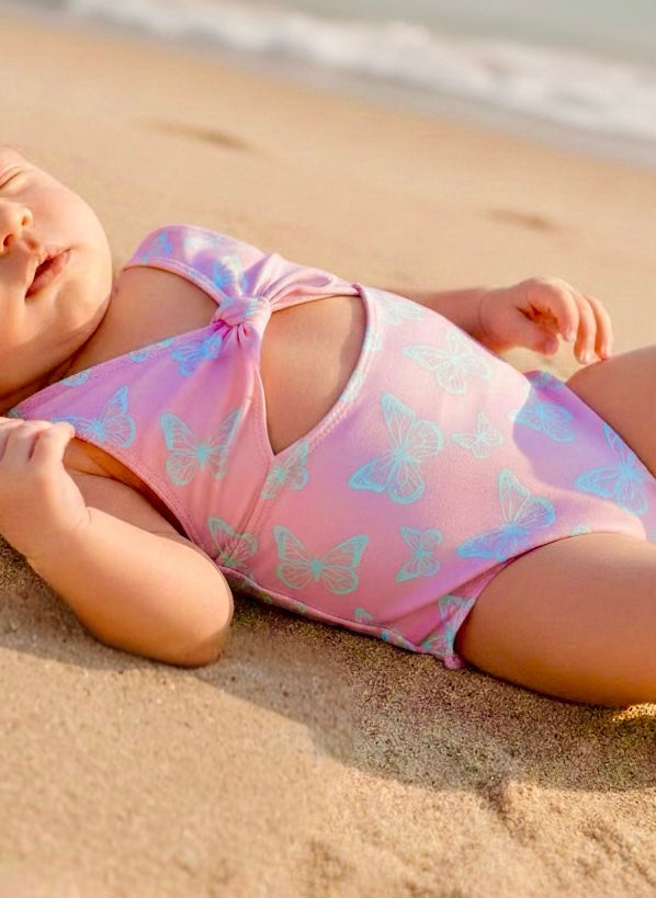 Introducing Baby’s First Swimsuit - a limited-edition design crafted from our exclusive pink swim fabric adorned with delicate silver butterflies. This dreamy print captures the magic of new beginnings - soft, shimmering, and sweetly symbolic of transformation and growth.