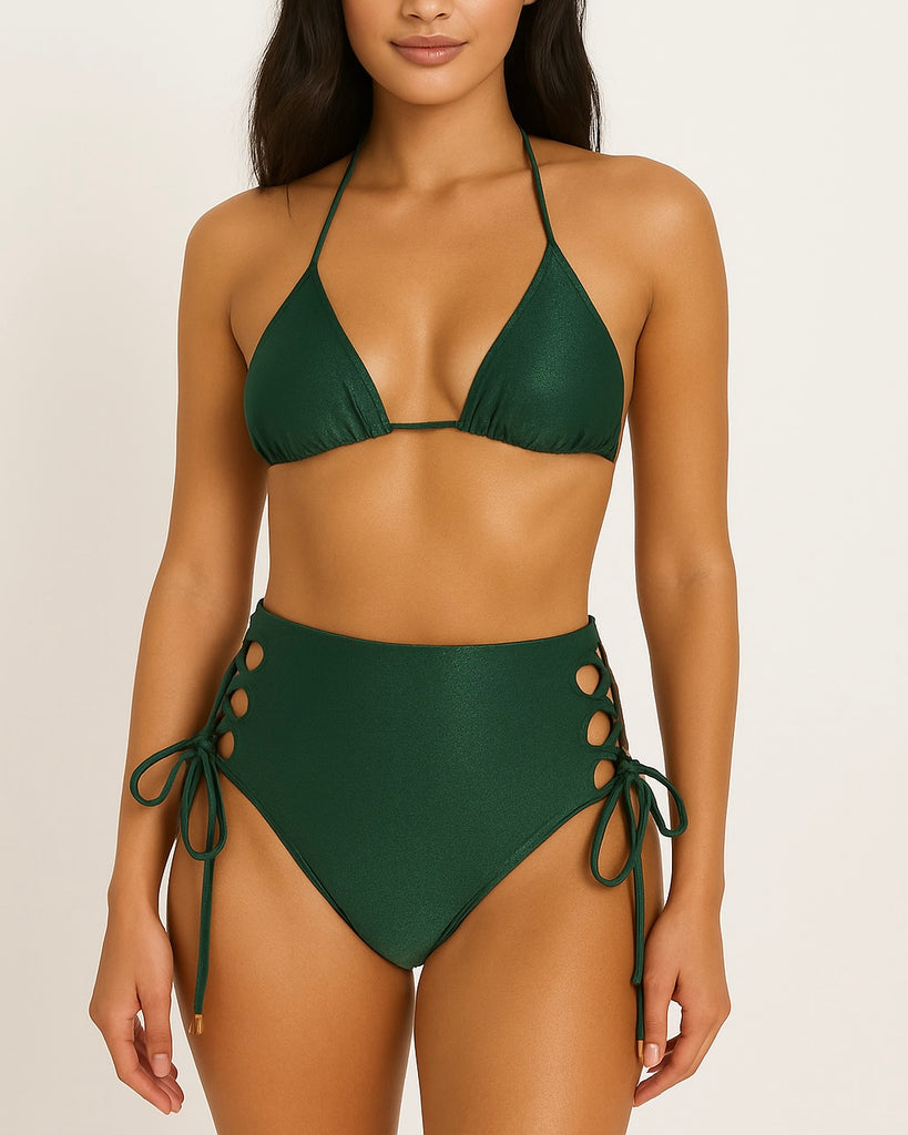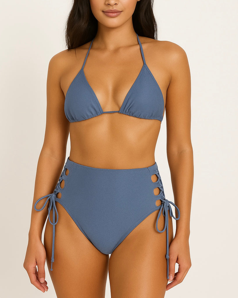 Meet Taylor! High waist bottoms that sit above the belly button, lace up the sides for an adjustable perfect fit, and has moderate coverage.